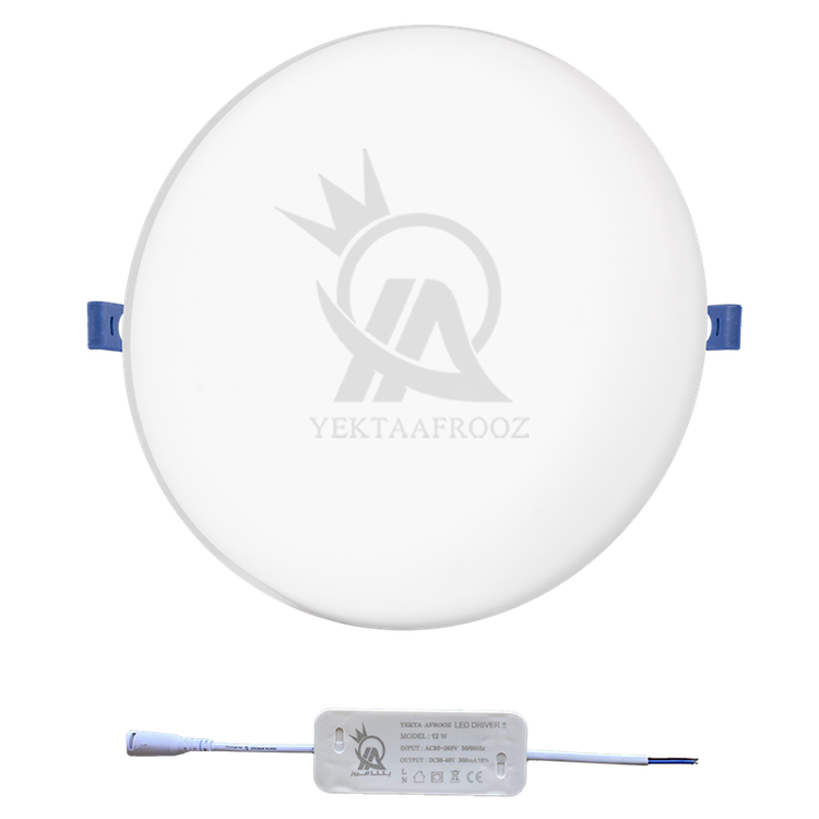 ررسی پنل توکار 12 وات گرد فنر متغیر تمام نور LED یکتا افروز